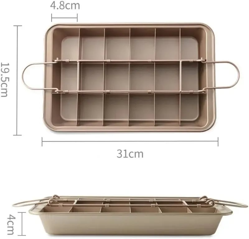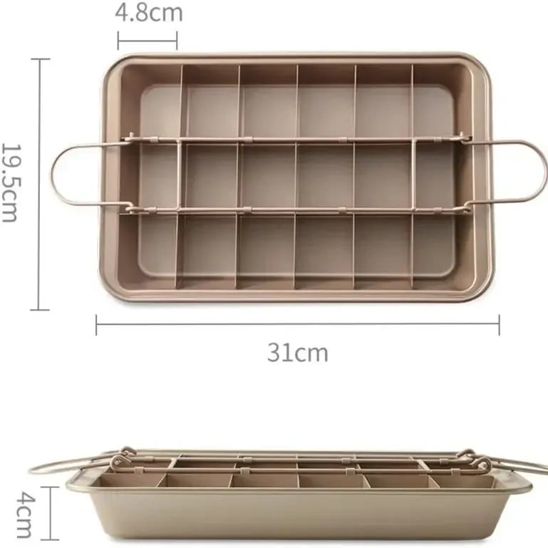 🍫 Brownie Pan with Built-In Dividers – Non-Stick 18 Pre-Slice Baking Tray