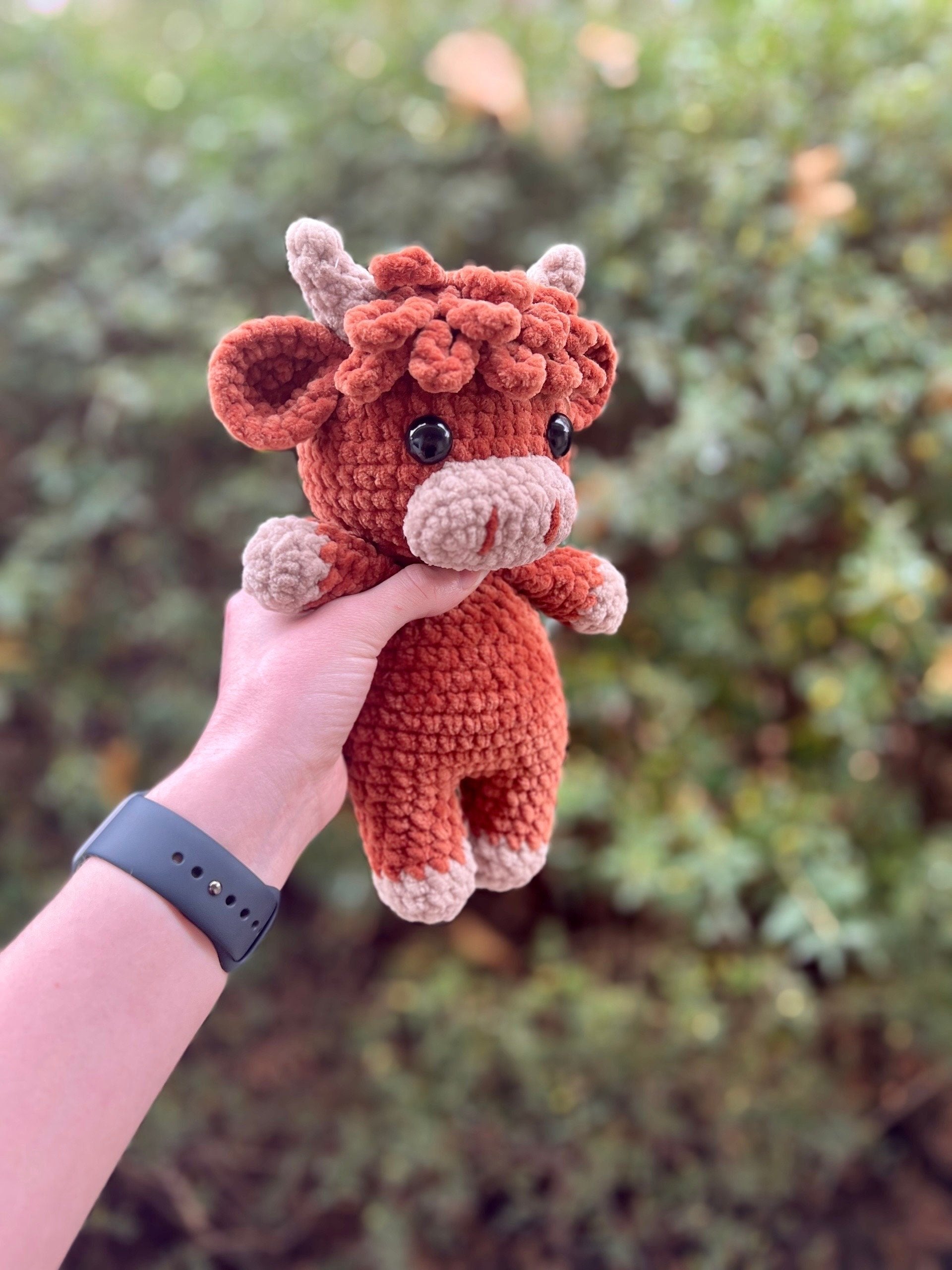 Meet our adorable Highland Cow Amigurumi, a soft and fluffy plushie inspired by the beloved Scottish highland cows!