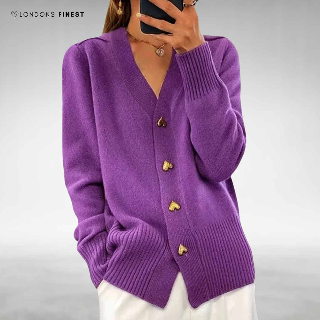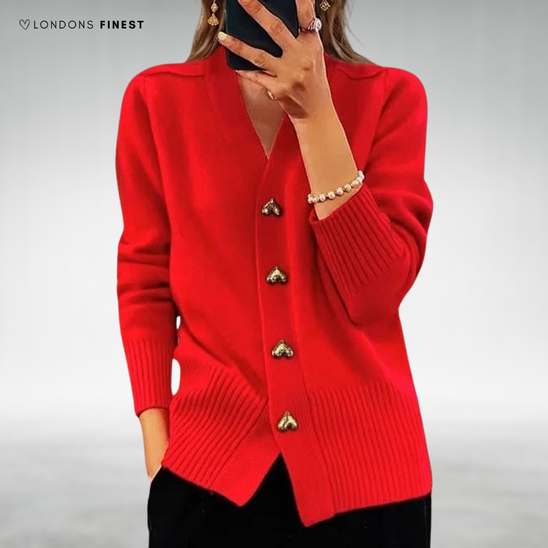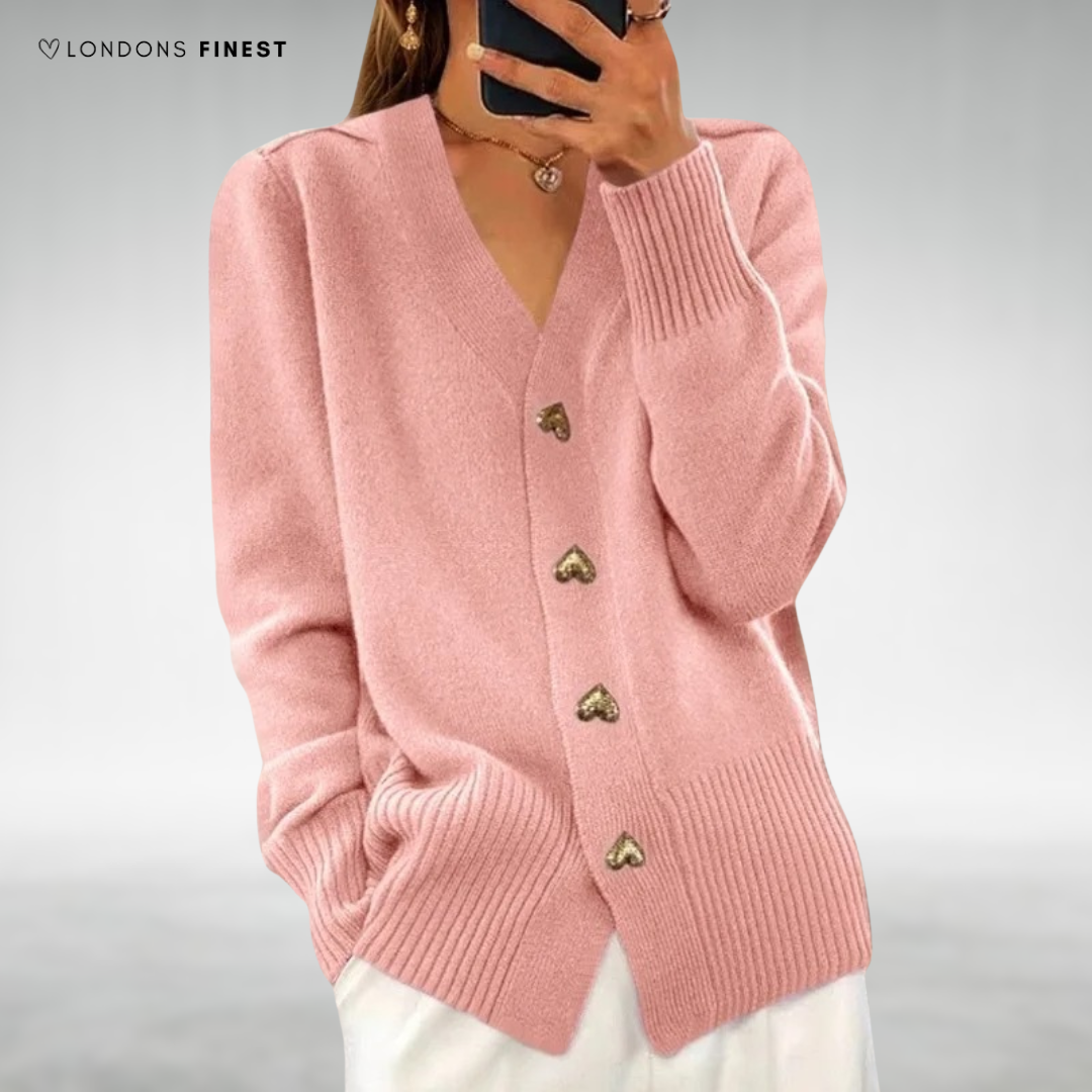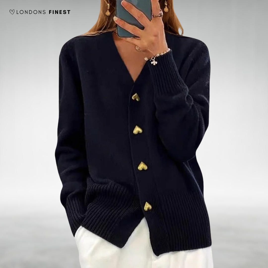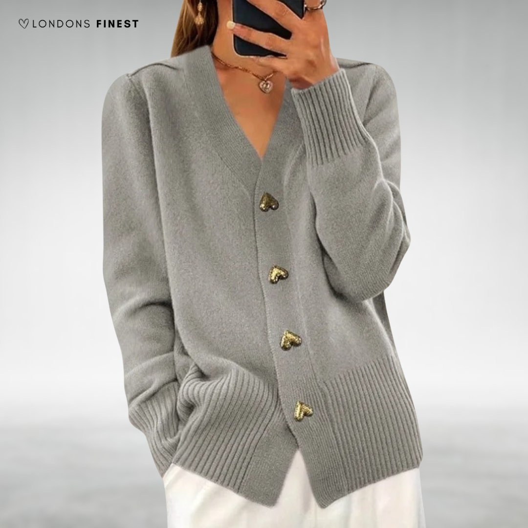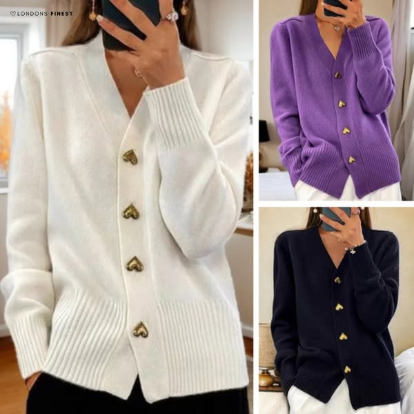 Mara Elegant Heart Button Cardigan: Chic Heart Details, Soft & Cozy Comfort