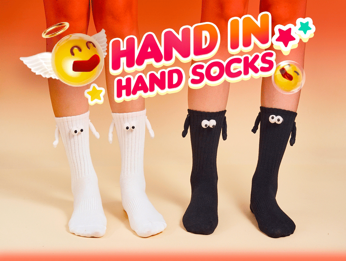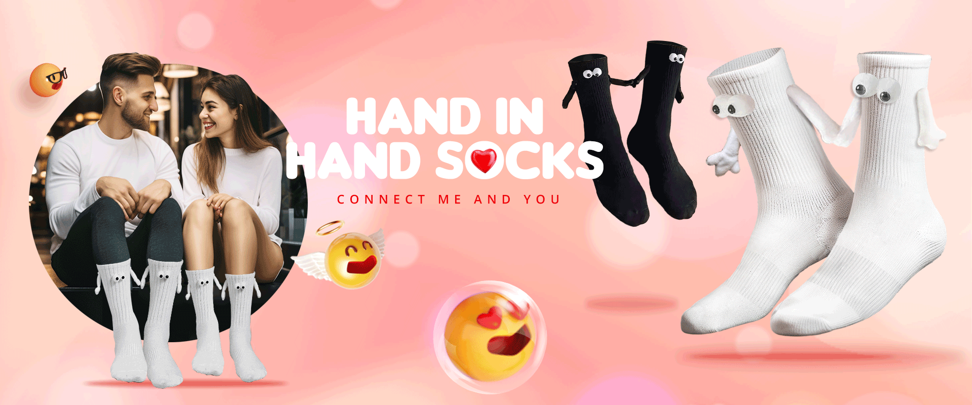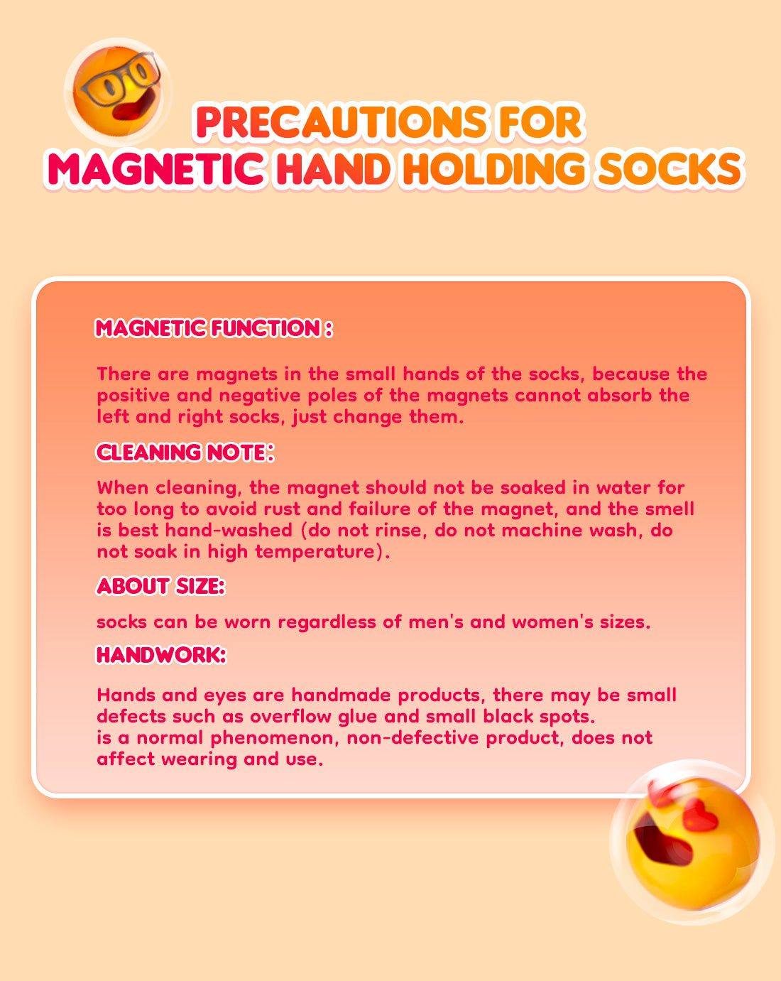 - 🔒💑When two hearts meet, let our Magnetic Hand-Holding Socks seal the connection with their magnetic embrace. These socks bring a touch of romance to every step, ensuring that you and your partner are always in sync. Show the world the strength of your love with these charming socks!