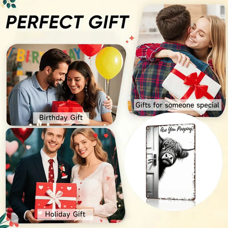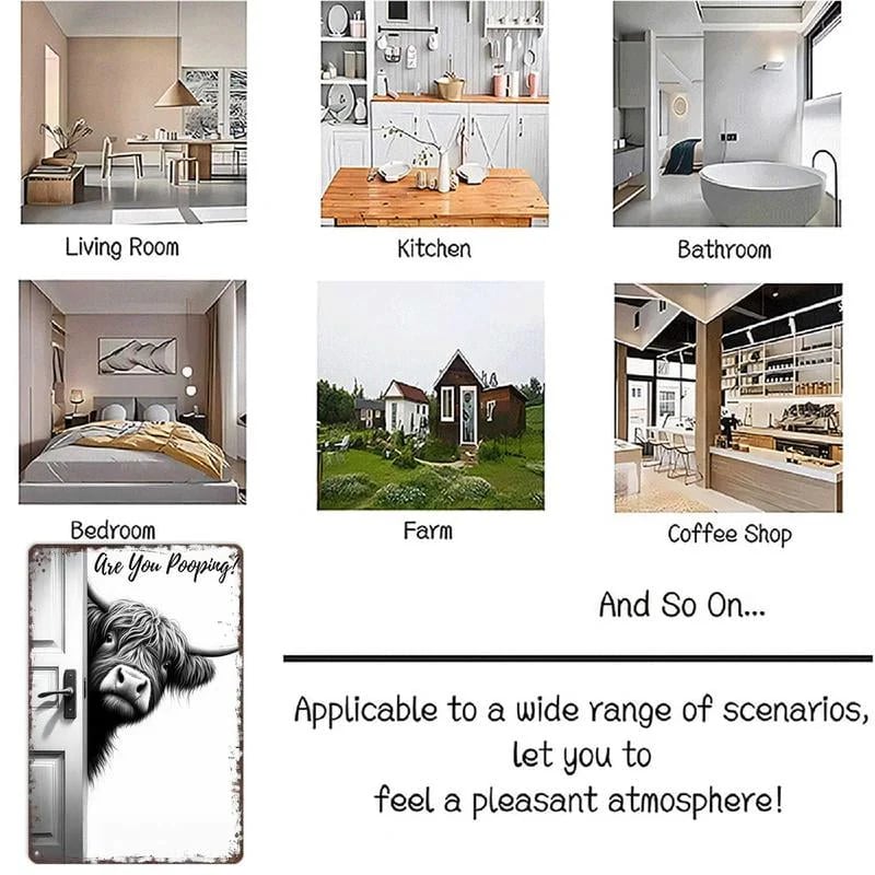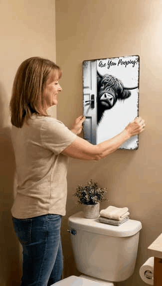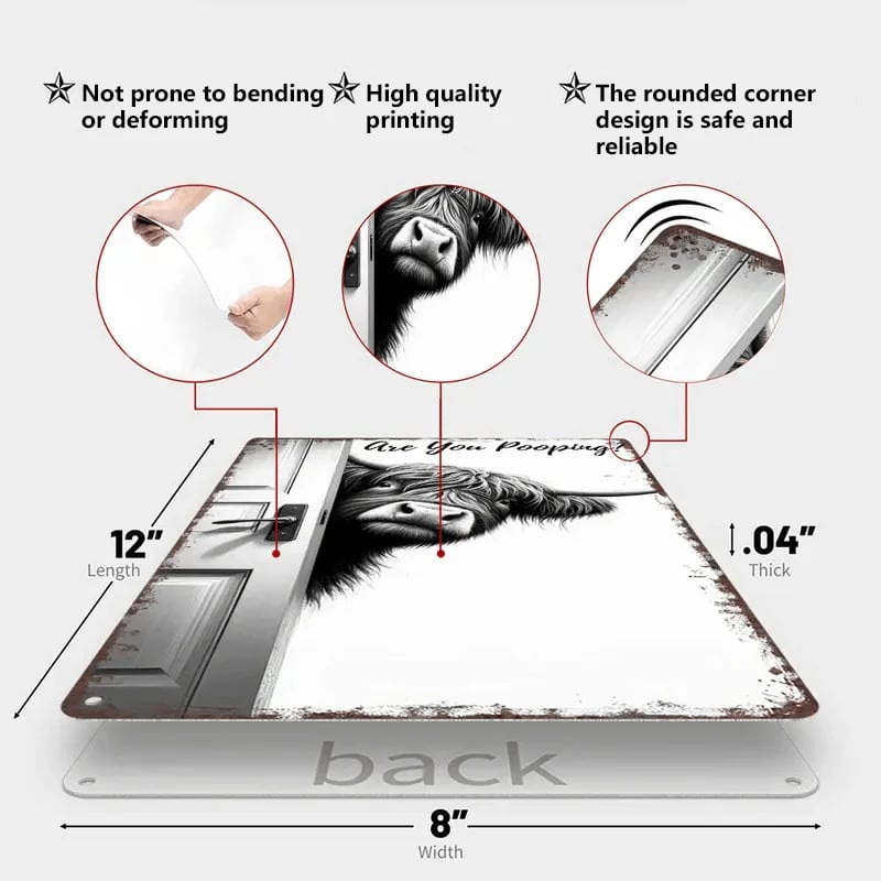 Vintage Highland Cow Sign – Funny"Are You Pooping?" Wall Decor😂