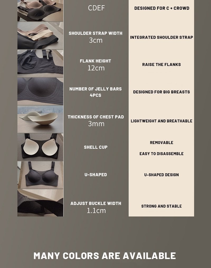 Widened side, can achieve the effect of breast-receiving, and at the same time can collect back fatAdjustable and detachable shoulder straps can be adjusted at will to evenly distribute back pressure.