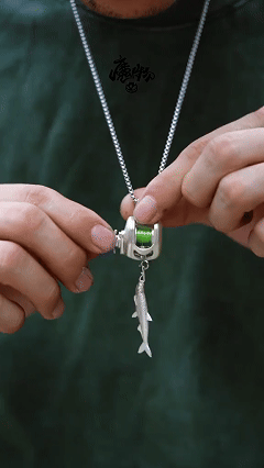 From the vivid green spool to the turquoise handle and silver fish charm 🐟, every inch is crafted with precision. The smooth finish and fine texture give it a premium jewelry feel that instantly elevates your look. 💫