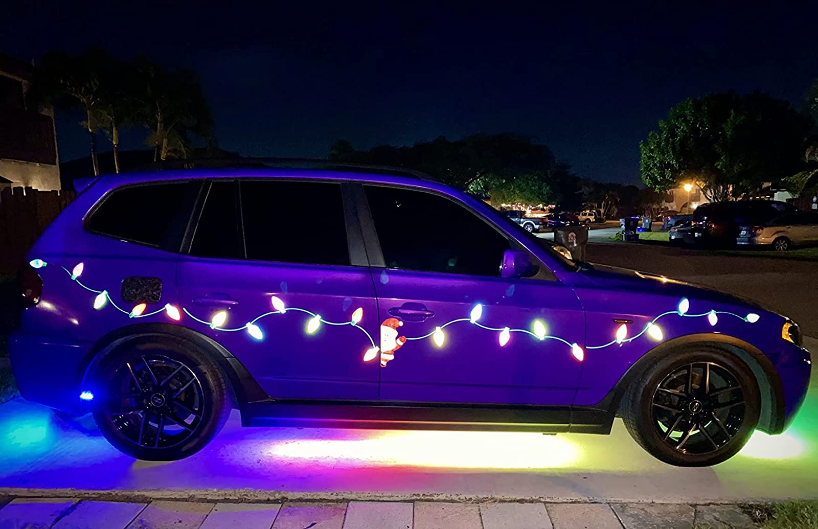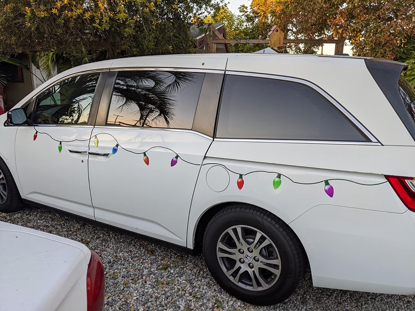 Made of reflective film and magnetic back. These reflective Christmas bulb magnets seem to light up when the headlights are illuminated. They shine like real light bulbs in the sun or light. This is a fun way to dress up a car for the holidays.