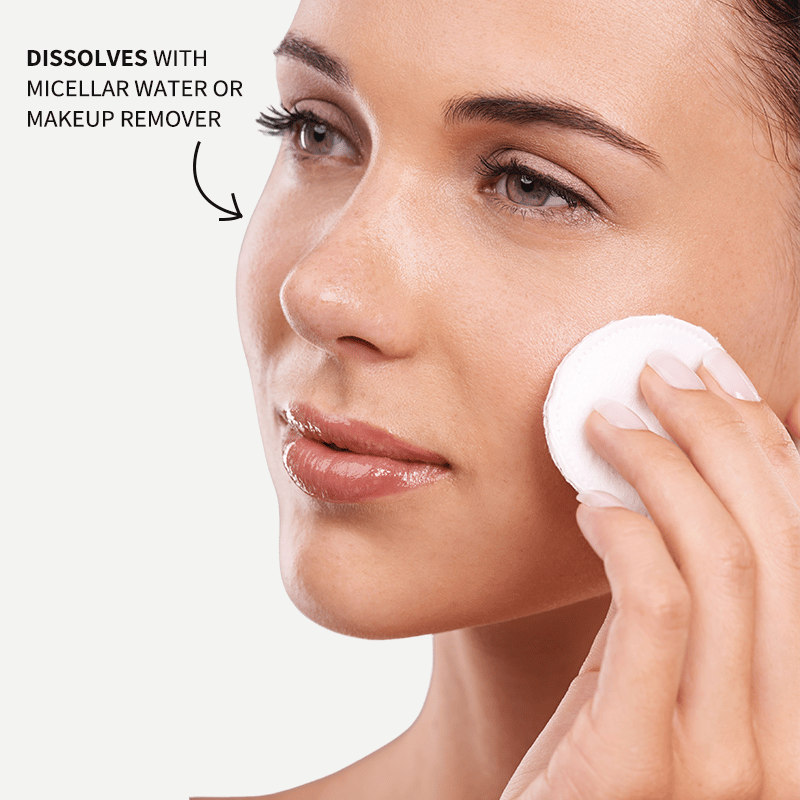 You only need warm water and a little bit of pressure. The tubes will slide right off your lashes, leaving no residue or need for harsh makeup removers.
